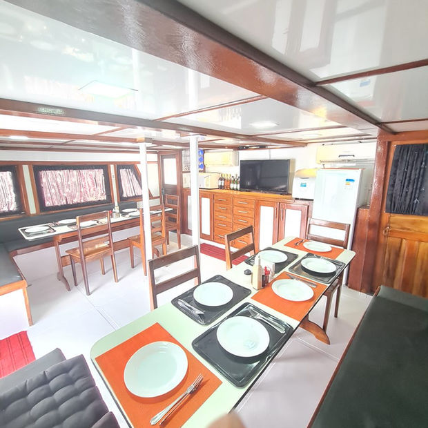 7 suites duplas mais 1 suite no barco de apoio, todas climatizadas individualmente (split). Atendendo em duplas ou grupos de até 14 pescadores.