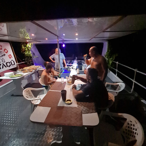 Acomoda até 2 pescadores, mais 1 suite no barco de apoio.
